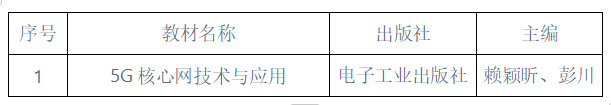 经电信工程与智能化学院教材建设工作小组审查,《5G核心网技术与应用》教材编写人员,符合学校教材编写人员条件,拟同意其开展相关教材编写工作,现予以公示,具体信息如下: