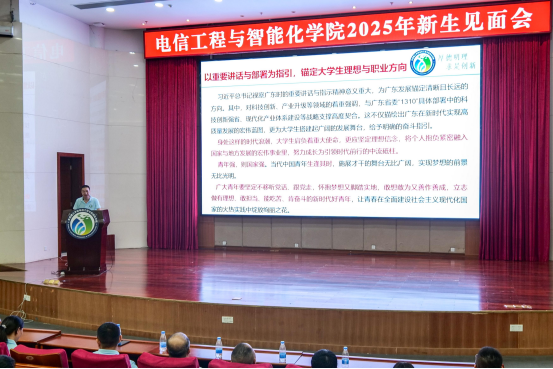 9月11日下午,电信工程与智能化学院2025年新生见面会在会议中心阶梯报告厅顺利举行。院长胡耀华以《听党话 跟党走 努力成长为新时代有为青年》为题,为全体新生讲授了内涵深刻的“思政第一课”。