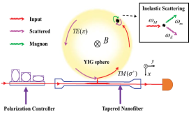 激光是20世纪人类的重大发明之一。在自旋电子学 (Spintronics)中,实现磁振子相干放大,即磁振子激光(作为光学激光在磁振子学上的一种类比),对进一步探究磁振子的非线性特性和量子效应具有重要的科学意义。该研究方向旨在探讨腔光磁系统中磁振子激光的产生及其有效调控。前期研究表明,在腔光磁系统中,入射的光学光子与YIG晶体上激发的磁振子模之间会发生非弹性散射,即布里渊散射(Brillouin scattering),从而实现磁振子的相干放大,使得磁振子激光的产生成为可能,这与腔光力系统中声子激光的产生在精神上是一致的