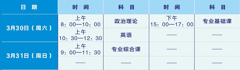 注:我校自行组织命题的专业综合课科目考试、退役大学生士兵综合考查考试将于46日举行,具体内容另行通知。