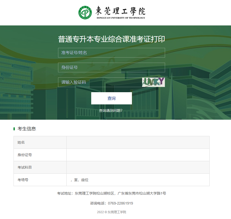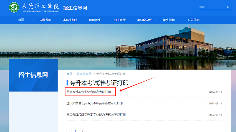 1.登录“东莞理工学院招生信息网”https://zsb.dgut.edu.cn/,点击“准考证打印”。