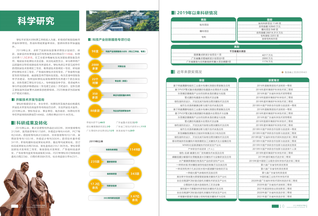 2019年以来,承担了国家科技部重点研发计划项目、课题、国家自然科学基金项目等各级各类科研项目1149项,科研总经费17.2亿多元,在工业废水电催化氢化深度处理装备及应用、电镀废水处理技术及设备、光固化成型方法、半导体照明产品质量检测等领域突破系列关键技术。
