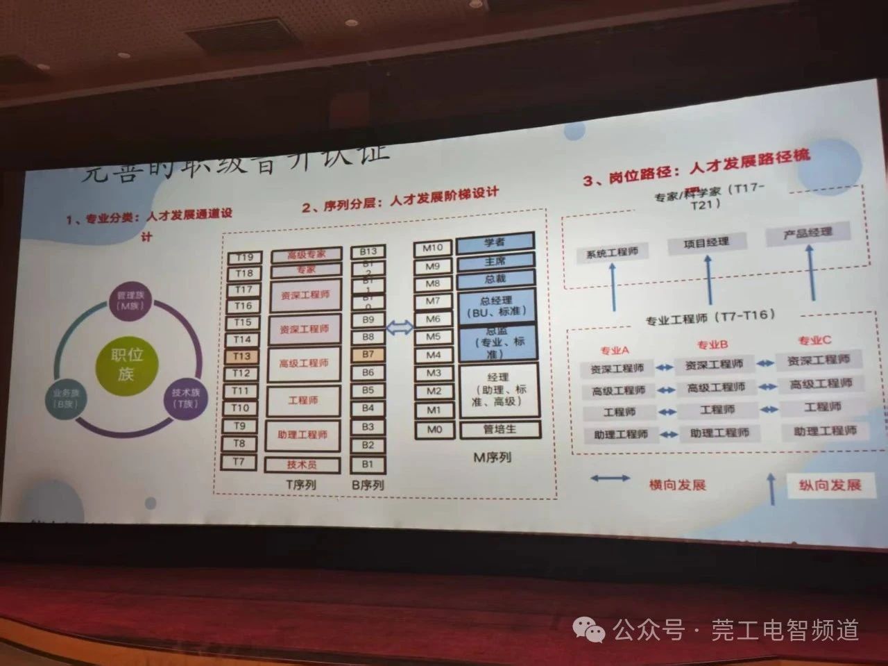 接下来是实习岗位宣讲环节,在视源股份任职的校友围绕专业能力成长,详细介绍了公司的发展历程、企业文化、招聘岗位及福利待遇,拆解职级晋升通道,生动呈现职场新人成长图谱。同时,他还分享了招聘过程中的心得和经验,让同学们对即将到来的求职季充满了信心。此外,他介绍了公司正在招聘的实习岗位,并给出了简历投递渠道,鼓励同学们投递简历,积极进行求职。