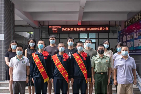 2021年9月8日上午,我院在8A207举办了“电子工程与智能化学院2021年入伍学生欢送会”,欢送我院即将参军入伍的三位学生:罗毅、刘海、李钊灿。我院党委副书记梁意红,学工办主任邓慧芬,电子系辅导员卢楚韵,通信系辅导员朱芳,入伍新兵班主任余炽业、彭超,以及退伍大学生代表邹俊、余广宇、张世锋、易柏旭出席本次欢送会。