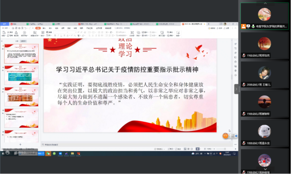 为发挥党建引领作用,我院各学生支部因事而化,将基层党建工作与疫情防控工作结合起来,深入学习习近平总书记关于疫情防控重要指示批示精神,传递总书记坚持人民至上、生命至上,坚持外防输入、内防反弹,坚持科学精准、动态清零的要求。党员带头先学先悟,在全院掀起新一轮学习热潮,通过学习统一思想,坚定信心。