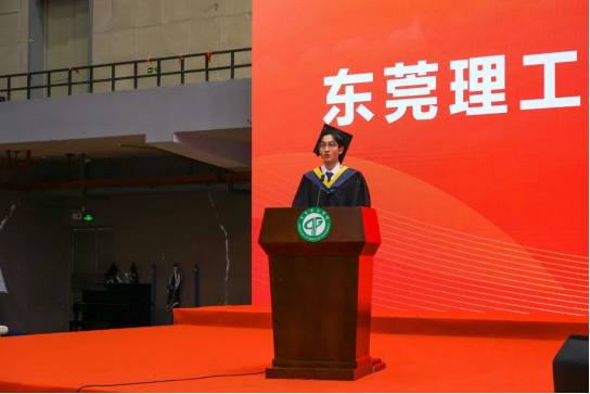 他提到在莞工度过了无悔的四年,是学校的培养,让每一位同学都拥有了“出彩”的力量。此刻带着对母校的感恩与眷恋,走到又一个人生新节点。作为一名毕业生,将牢记“学而知不足”的校训,在为个人的目标努力奋斗时,也为社会和祖国做力所能及的贡献。此时的分别不是一段辉煌的结束,而恰是无数辉煌的开始,让我们在更高处见!
