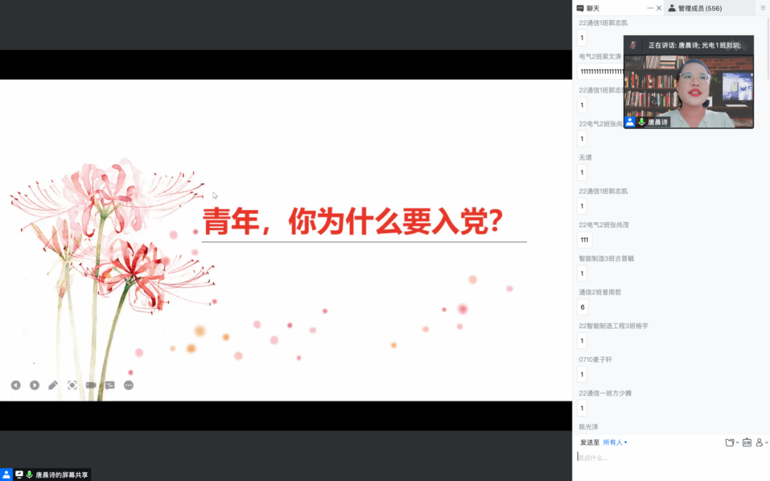 心中有信仰,脚下有力量。为增强新生对中国共产党的了解与认识,引导同学们积极向党组织靠拢,近日,我院通过线上会议举办新生入党启蒙教育。马克思主义学院教师兼电智学院特聘班主任唐晨诗博士主讲《青年,你为什么要入党?》,辅导员杨乐瑶为新生介绍发展党员工作流程,全体新生参加本次讲座。