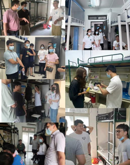 学院领导、班主任、辅导员、助班陆续分批到宿舍看望新生,送去学院的关怀和祝福。