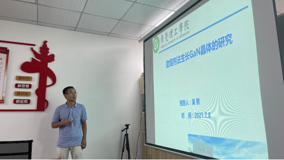 吴熙博士后分享了题为《助熔剂法生长GaN晶体的研究》的报告。他介绍了助熔剂法的发展,特别是Na助熔剂法的优点,并与会分享了他在Na助熔剂法生长GaN晶体的研究进展。