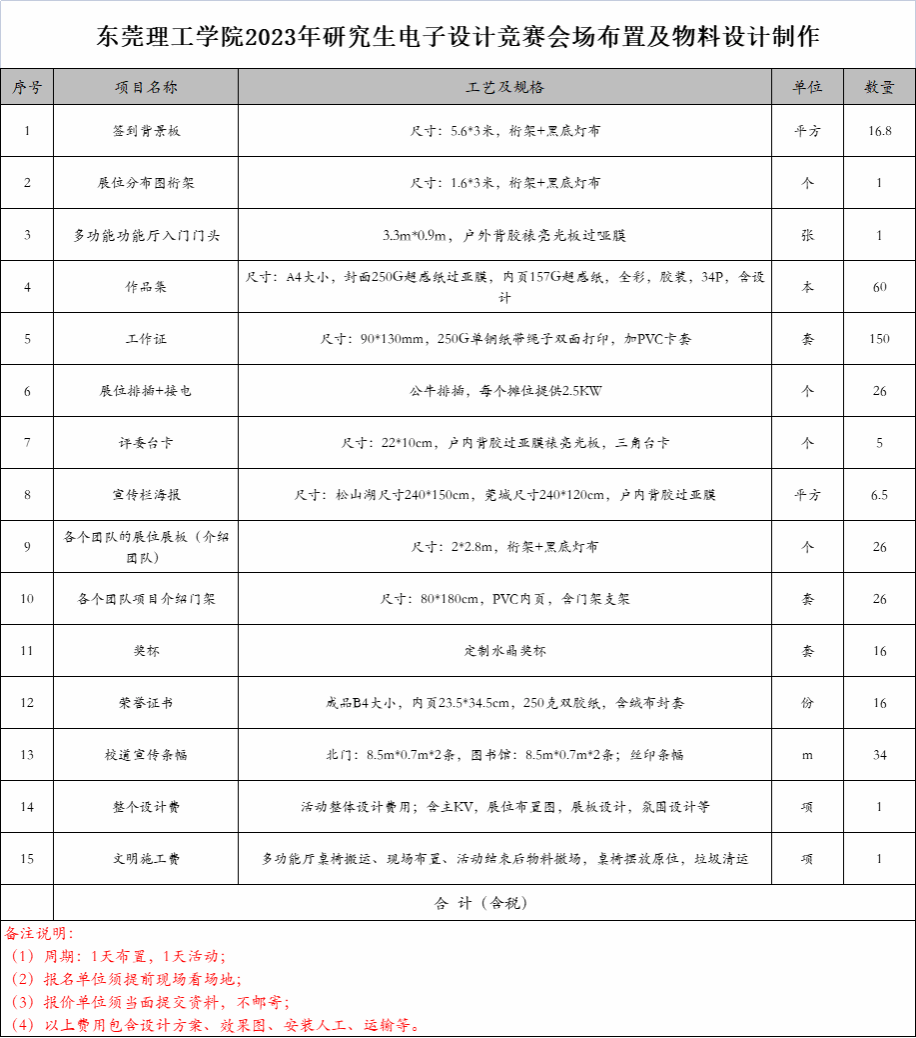 东莞理工学院2023年研究生电子设计竞赛会场布置及物料设计制作询价